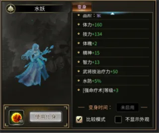 紫色品质的水妖化身,是为强命疗术技能加强的化身,使用水妖化身可以极大地提升军师的治疗能力,其变化说翻天覆地也不为过,绝对的车见车载类型。