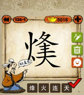 成语玩命猜游戏中加入了这样一张图片关卡,图片为一个烽字,而在烽字的下面有一个大字。具体图片如下图:
