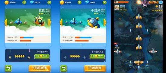 游戏开始前,可以用金币买些小道具:天神祝福可以在这一局给你一个随机BUFF(比如得分提高和获得的金币增加),核弹可以炸毁全屏的敌机帮你摆脱困境,以及开局前5000-10000米的无敌+超速飞行的狂热驱动和超·狂热驱动。