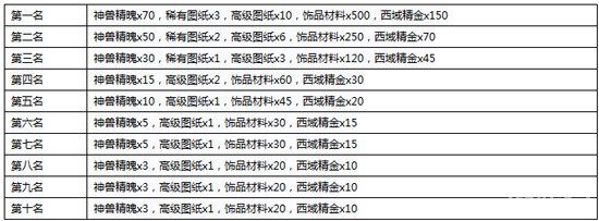 注:第一名的玩家,若收到鲜花数量大于等于10000朵,则可获得额外【榜首奖励】神兽精魄30个!
