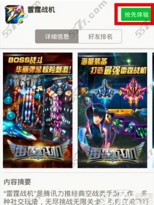 4、然后在打开的页面,最下面的地方有一个”抢先体验“的按钮,玩家可以点击。点击以后就会,跳转到应用宝界面,然后系统会提示你抢号成功然后,自动进行下载,然后你就在你的设备上面看到已经安装好了,腾讯雷霆战机。