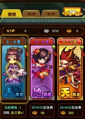 卡牌依然是抽取是来卡最快的方法!游戏内的商城也必不可少!游戏内有天地人三个厢房对应3中不同品质的伙伴!