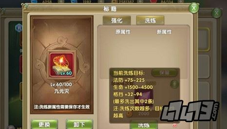 通过洗炼,让你的秘籍与其他道友的分分钟不同,完虐制霸不再是梦。不过值得注意的是,当已洗炼的秘籍被吞噬的时候,系统是不会返还秘籍洗炼石的哦,所以洗炼虽然,但一定要慎重哦。