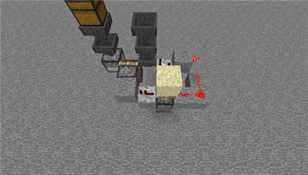 第二步:制作物品收集部分,按照下图所示摆放红石电路和红石部件。以下情况会在灵魂沙上有潜影盒的时候发生: