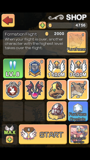 Formation Flight:使用概念跟第二条命有点类似,如果玩家只有1个角色的话当然还是由原角色复活,但如果有购买其他角色的话,就会以所有角色中等级最高的该角色复活继续