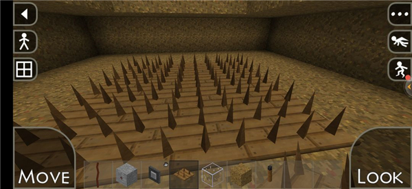 7、这就是做好以后陷阱,家门口做上一个再连到家里面,白天丢肉勾引狼进来,等到月圆变狼人按下按钮刺钉出来,刷钻石简直不要太容易