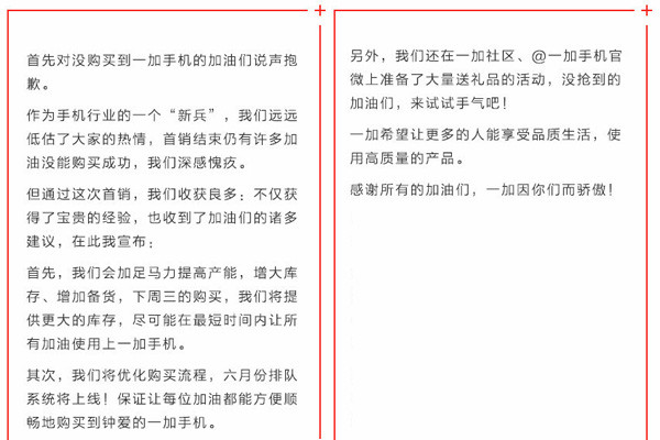 另外预计一加目前的预约开饭购买模式也不会放弃,预约购买和排队模式二者将会共存下去。