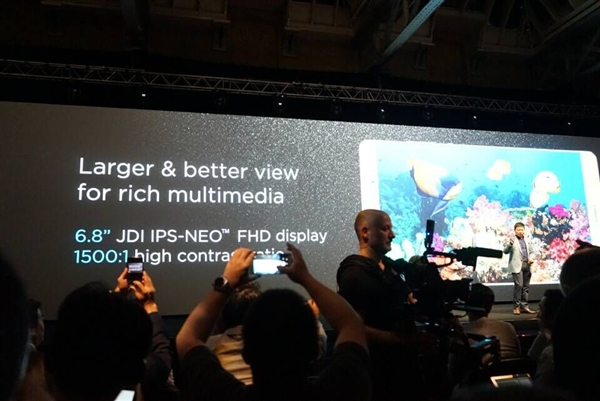 83%屏占比,JDI IPS-NEO 1080p显示面板,1500:1高对比度,95.9%最高饱和度。Note4也中枪了。