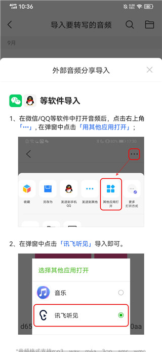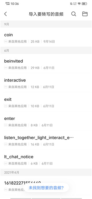 3、要是在这里没有找到下载好的语音文件,也可以直接在语音文件处点击分享,选择本app打开也能导入。