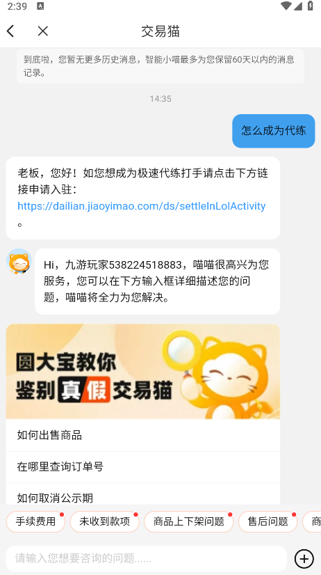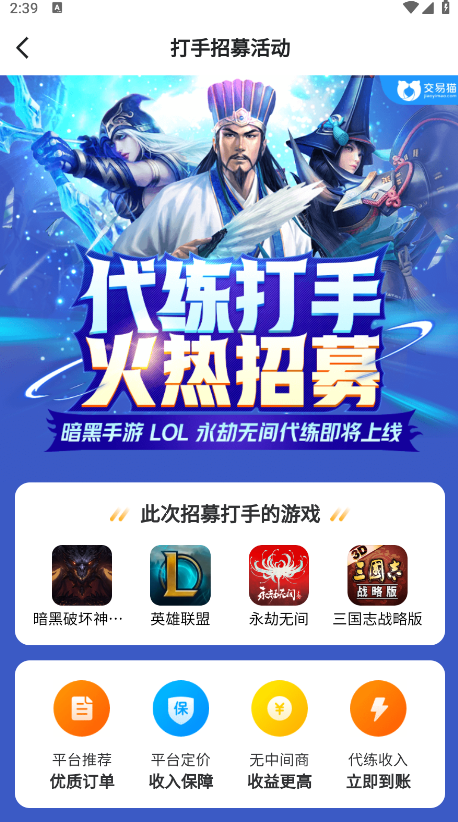 交易猫手机版是专为手机用户推出的满足其游戏充值和线上游戏虚拟物品交易需求的应用。