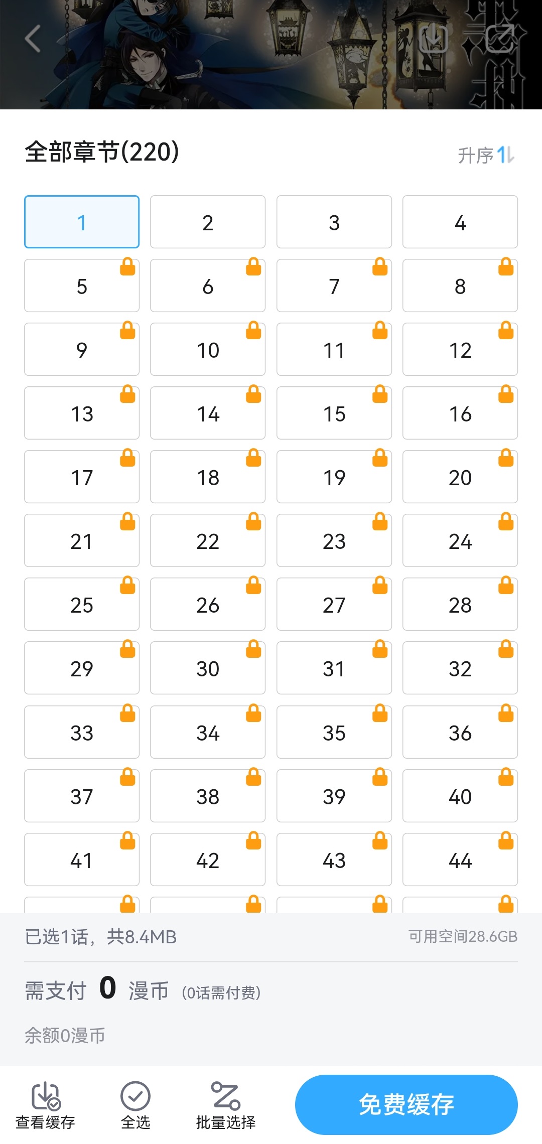 2、选择你需要下载的章节,有锁标志的说明需要付费下载,没有的则是免费下载。选择完成之后点击右下角开始下载。