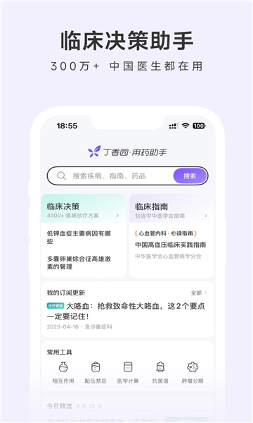 用药助手隶属于丁香园旗下,是为医药人士定制的「实用临床决策工具」,致力于辅助医药专业人员做出更规范、更安全的临床决策。
