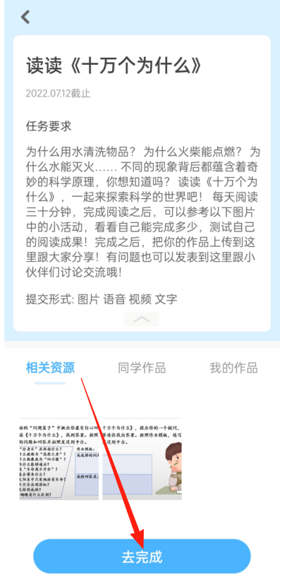 2、确认任务要求,然后点击【去完成】