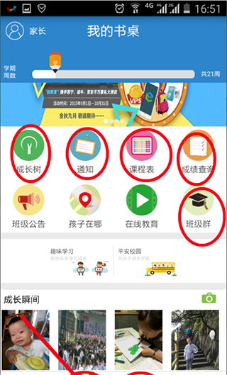 1、首先学校会给一个网址让大家下载,然后给家长发了一个登录密码,账号是自已的手机号码。登录后就会出来这么个界面有成长树(点这里可以输入学生从幼小班到现上的情况)、通知(班上、学校的通知)、课程表(课程安排)、成绩查询(各科的考试成绩)、班级群(家长和老师互相交流的地方)等。最下面一排我的纸条(各科老师每天布置的作业)点击一下。