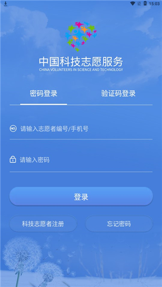 1、在本站下载安装并打开中国科技志愿app,进入软件进行登陆注册。