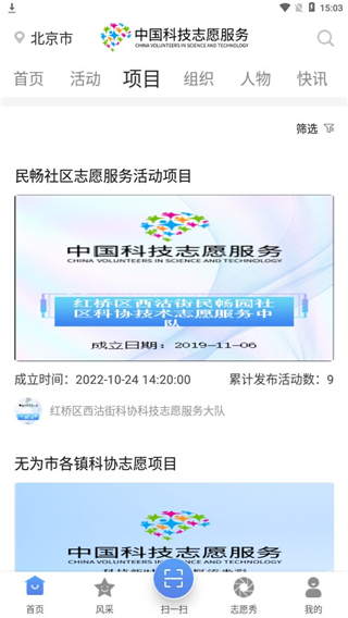 2、进入软件首页,为用户提供了各种项目,活动,组织,资讯等各种信息入口。
