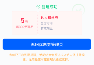 【抖店app首页】-【全部】-【营销推广】-【优惠券】-【一键创建】。