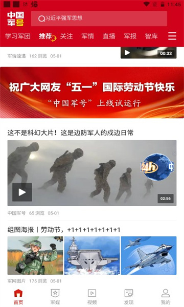 1、首页会自动为你推荐最新资讯,了解最新军事消息。