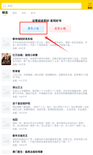 2、点击男生或女生设置阅读偏好。