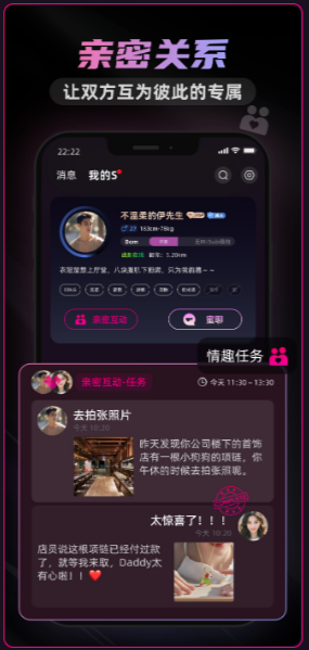 通过互动升级关系亲密度,解锁专属权益与私密空间,增进情感连接。