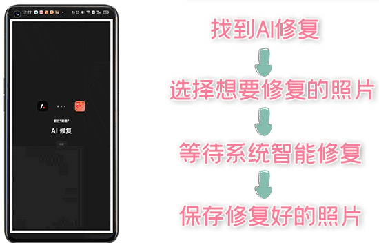 除此之外,软件里还有许多实用功能,其中我特别推荐一个功能——老照片修复。如果你手头有一些年代久远.模糊不清的老照片,OPPO的这个功能能够帮你修复它们。只需进入 OPPO LAB,找到“AI修复”功能。