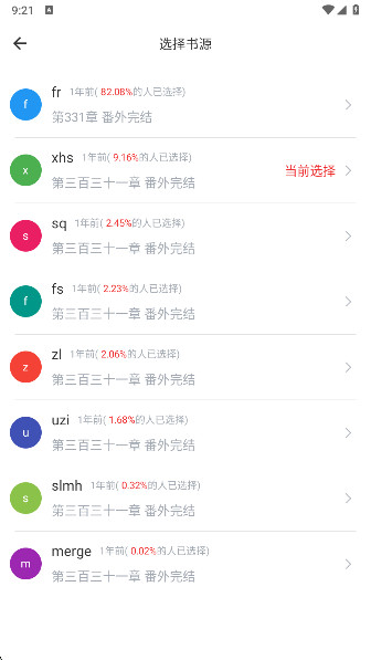 3、选择章节最多的书源,如果章节一样多,就随便选一个