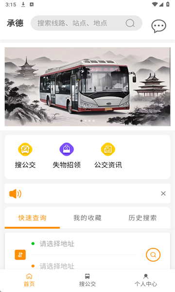 热河公交行是一款专业便捷的公交查询软件,专为承德市民制作,可以帮助大家在软件中实时查询公交,搜索公交线路,同时在软件中还拥有失物招领、公交资讯,为大家提供便捷的出行查询服务,有需要就快来下载体验吧!