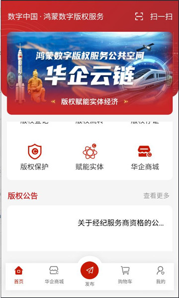 华企云链app是一款专注于版权交易的公共服务平台,这里不止可以进行版权登记,还可以进行版权流转,版权保护等,可以赋能中小企业,提升企业竞争力。华企云链app还拥有兑换专区和生活服务。