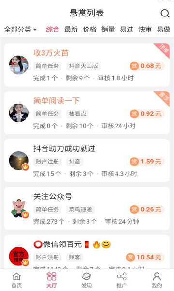 注册并登录山豆米米app,进入首页推荐或任务大厅。