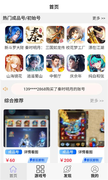 账号交易:支持多类游戏账号的在线买卖。