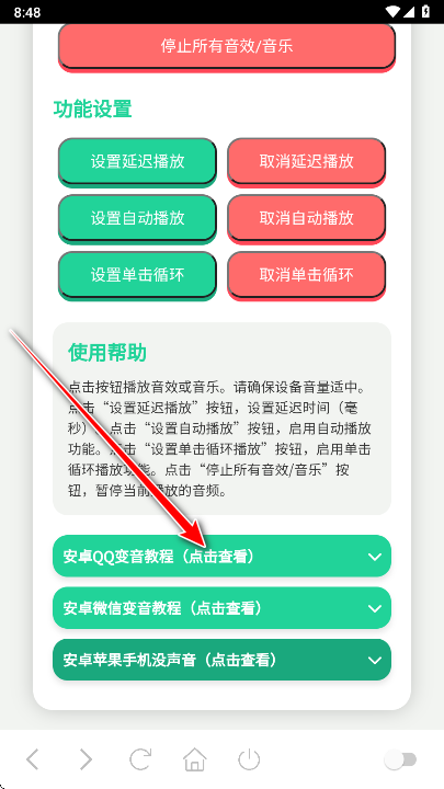2.随机点击一个音效,就会播放相对应的音效哈。