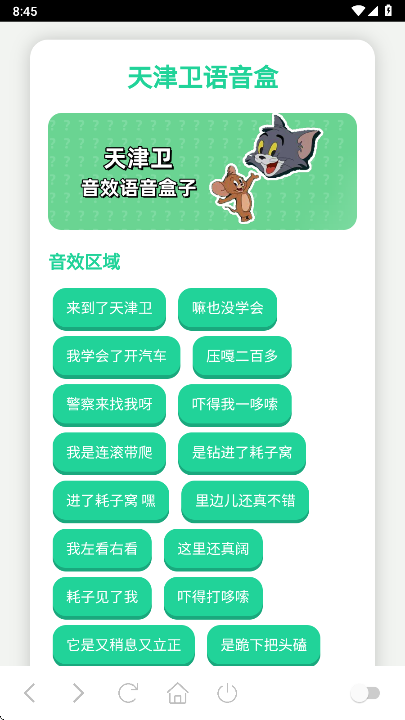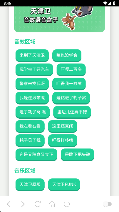 1.打开天津卫语音盒,可以看到音效区域有很多的经典音效语句。