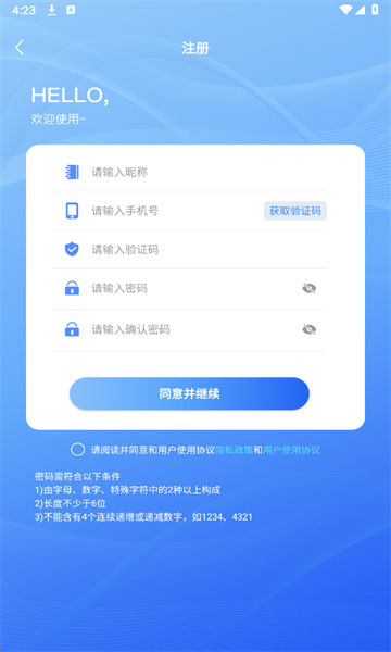 3、使用手机号码注册账号,完成身份验证后开始使用。