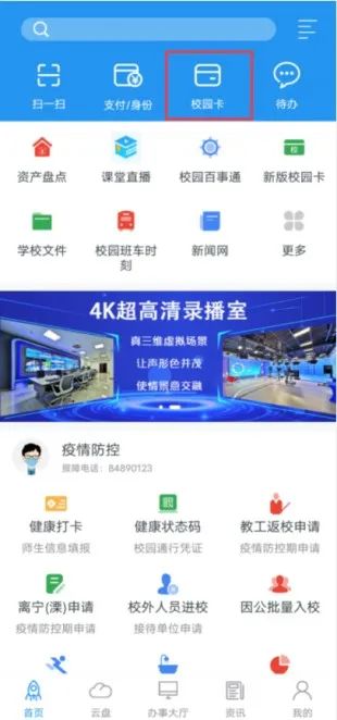 2、打通校园一卡通系统,实现线上充值、消费记录查询、水电缴费、门禁权限管理及失卡挂失,覆盖食堂、超市、浴室、门禁等校内场景。