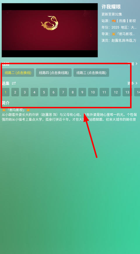 6、点开直接跳转播放,可以调整播放源和观看集数。