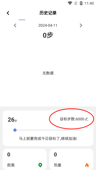 3、点击目标步数可以调节目标