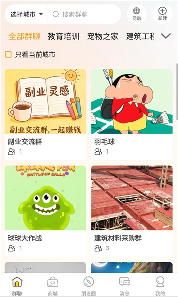 一键创建群聊,支持兴趣、行业、学习、地域等多种圈子