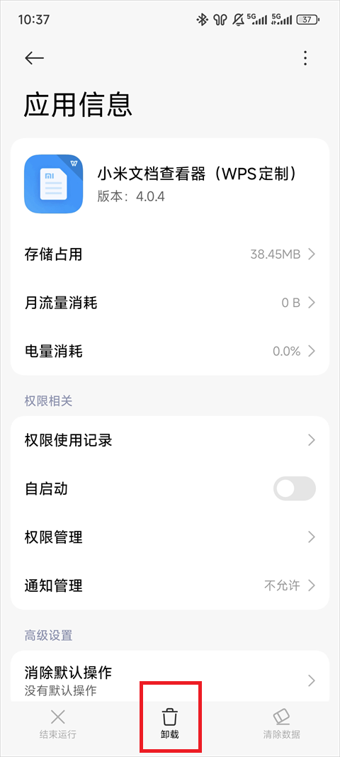 4、最后点击下方的卸载按钮,即可卸载该应用。