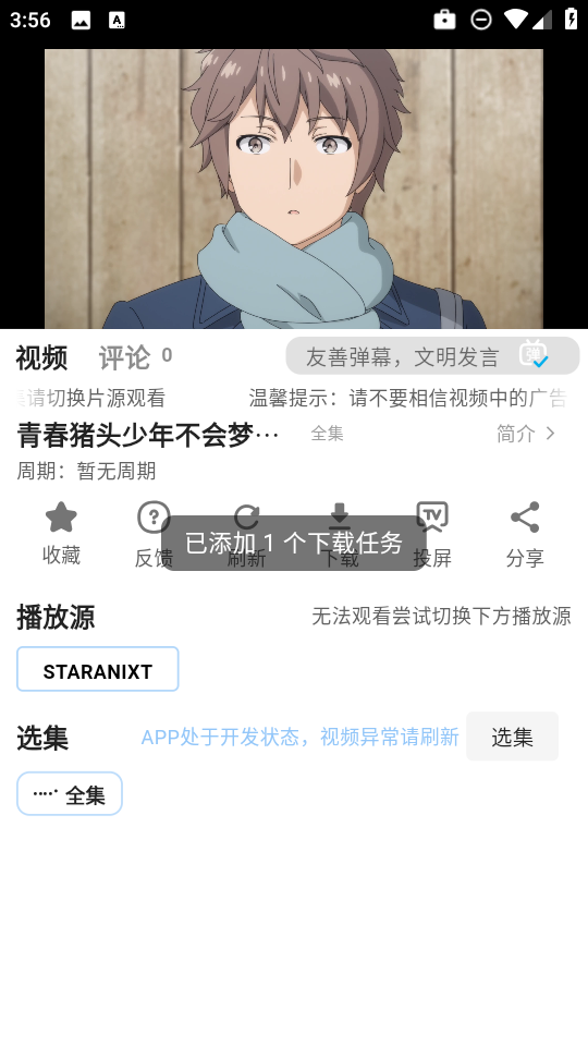 1、进入StarAniX之后,任意播放一部喜欢的动漫。