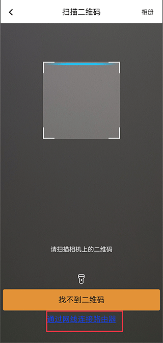 3、将手机对着摄像机上的二维码进行扫描添加,若扫描不了也可以点击下方通过网线连接路由器方式来添加