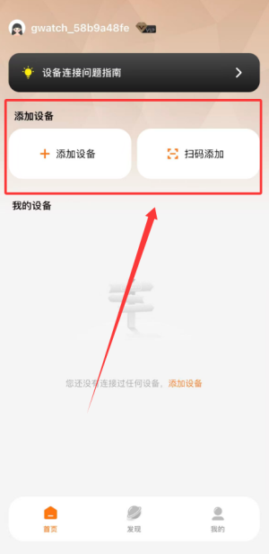 2、首页提供设备添加功能,支持扫描二维码快速绑定兼容的智能设备。