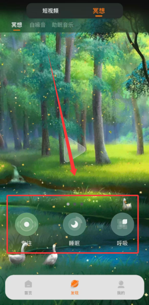 3、发现板块包含专注力训练、睡眠辅助及呼吸调节等健康管理工具。