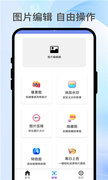 支持裁剪、旋转、调整亮度等常用图片编辑功能。