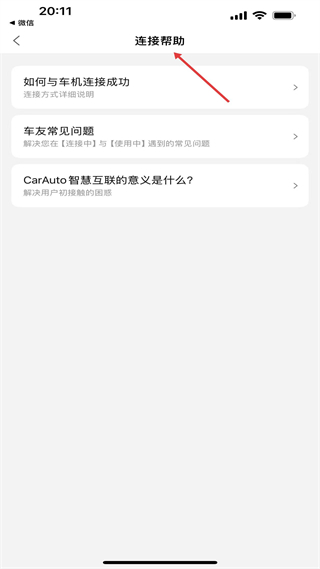 2、连接帮助页含车机连接说明、常见问题解答,辅助解决互联中的操作与认知困惑,是互联的指南页面。