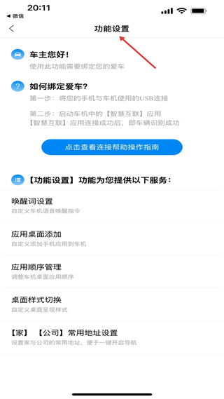 3、功能设置需绑定爱车后使用,提供唤醒词、应用管理等车机自定义功能,是互联后的个性化配置入口。