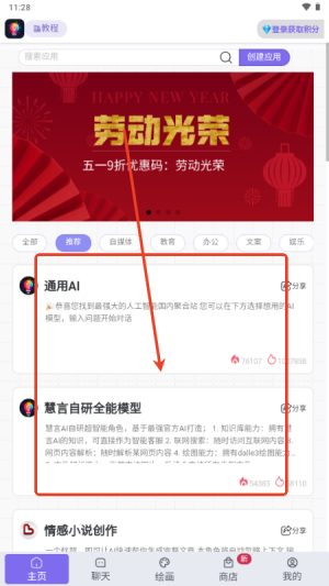 4、我们还可以进入绘画页面,这里可以进行AI绘画的功能使用。