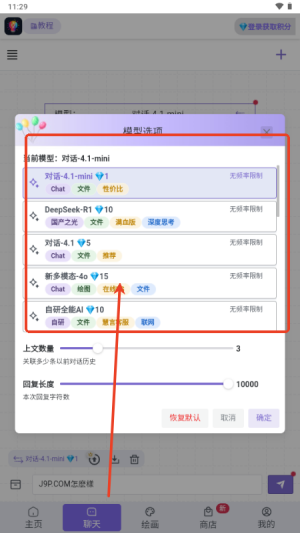 3、还可以切换不同的模型,部分模型收费,我们可以选择免费的模型使用。