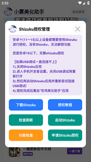 1、进入软件后需要开启shizuku才能使用。