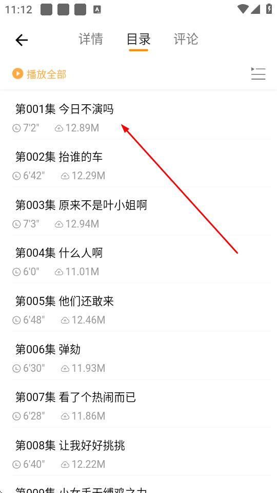 3、在目录页面,点击想要收听的具体集数,如第001集今日不演吗。