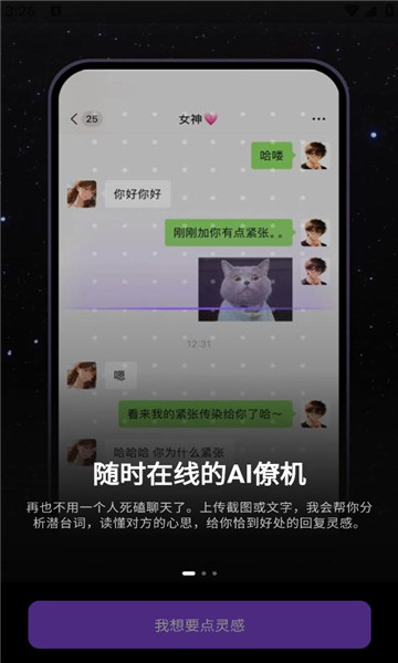 上传微信/QQ聊天截图,AI军师给出多套分析和清爽不油腻的回复,手把手教你怎么用聊天推进关系,建立吸引,让你们的聊天更有情绪,不再需要担心冷场尴尬。